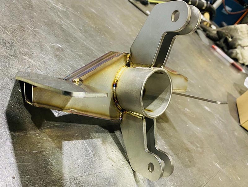 機械装置に取り付き洗浄液が両端の口から出ていきます。 公差が非常に厳しくサイズ感は手のひらサイズですが、溶接後公差が±0.5以内でした。 形状的に溶接構造でしか出来ず苦労しましたが、溶接順を考え3D定盤で固定し、治具を駆使して製作致しました。 既存の製作会社より品物の上りが綺麗と仰っていただき、リピートにも繋がりました。
