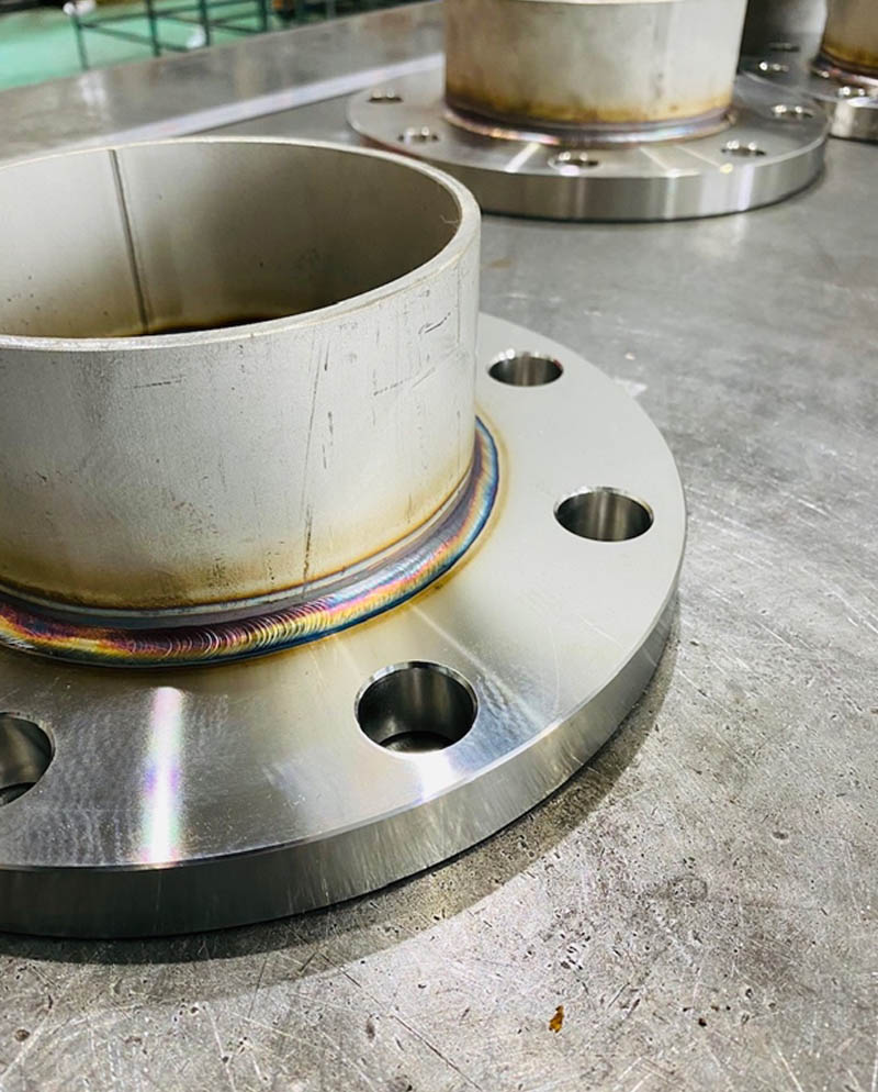 一品一応の板金タンクに取り付く前に溶接を施しています。 実際見ての通り、端から端まで溶接ビートの幅 肉盛りの高さが均一に溶接されています。 こういったところも含め、弊社では溶接の外観にも拘って溶接しています。
